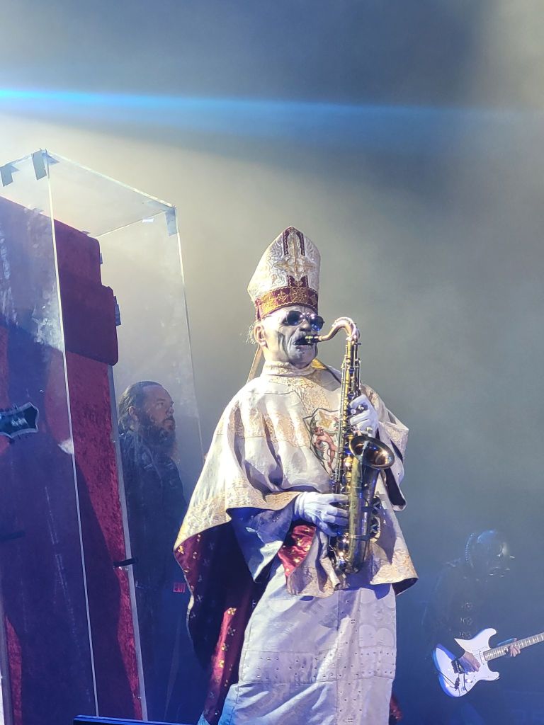 I’ll have to admit this was one for the books! While I enjoy Ghost‘s music, I wouldn’t, by any means, call myself a fan, a clergy die-hard, or member of the mass. I was originally pulled in by Spiritbox, whom I’ve adored since early on, and was all too ecstatic to see on stage again (though it was a bit short, and I’ll get to that later). Mastodon was on the bill as well, and I hadn’t paid too much attention to them or their music but, I did recognize it from old video games and playlists.