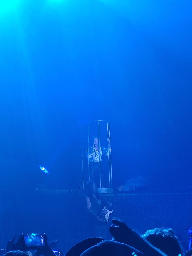 “Fear of the Dark” commenced, with fans serenading the band with the tell-tale chanting many came to know and love. Bruce came out in plague doctor attire, waving his lantern and wandering the smoke-screened stage to amplify the energy of this well-loved track. Following up with “Hallowed Be Thy Name” was no less the spectacle either, debuting Bruce locked in a cage and a noose that dropped from the rafters above.
