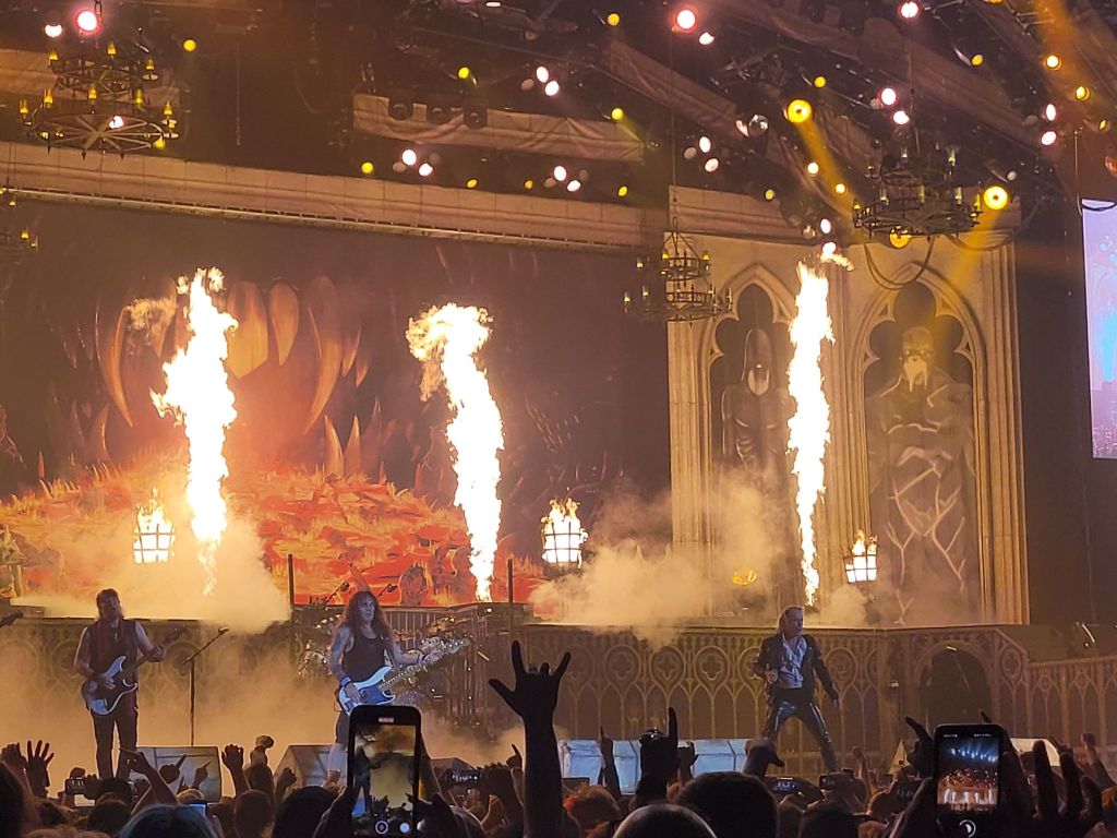 We held on for “Revelations” but moved back before “Blood Brothers” commenced which had fans singing word for word and almost drowning out the band. Looking around, I could see the excitement of fans of all ages really taking in every bit that Maiden had to offer. From Bruce’s stage-wandering energy to Adrian’s guitar work, and every banner, flame, and spectacle they had to unleash.