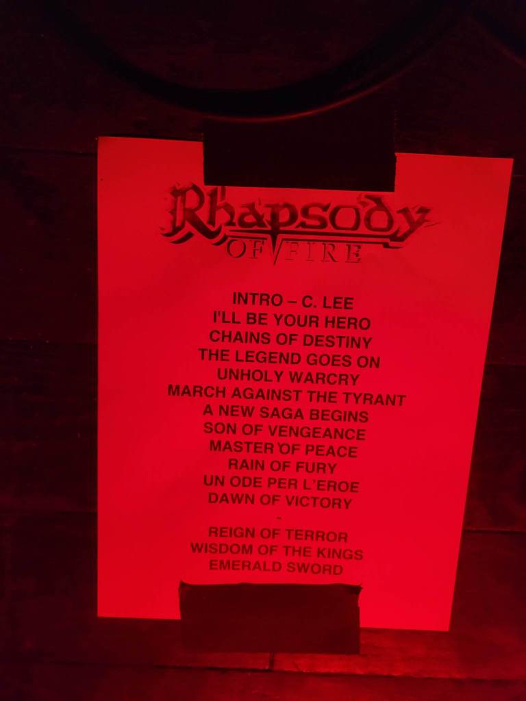 Tracks like “Sacred Power of Raging Winds” and “Unholy Warcry” lingered with me throughout my years until new albums came and they passed the torch. Fans from Wind Rose seemed to move toward the back or out for a breather as Rhapsody took the stage, crimson backdrop bringing in Christopher Lee’s legendary voice to retell “Tales of a Hero’s Fate“.