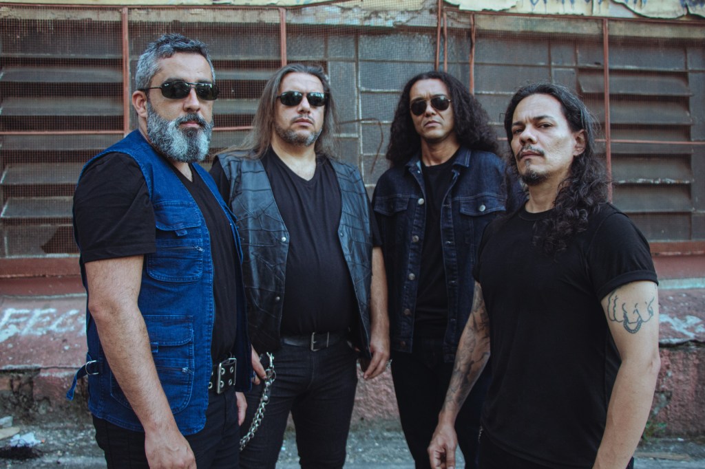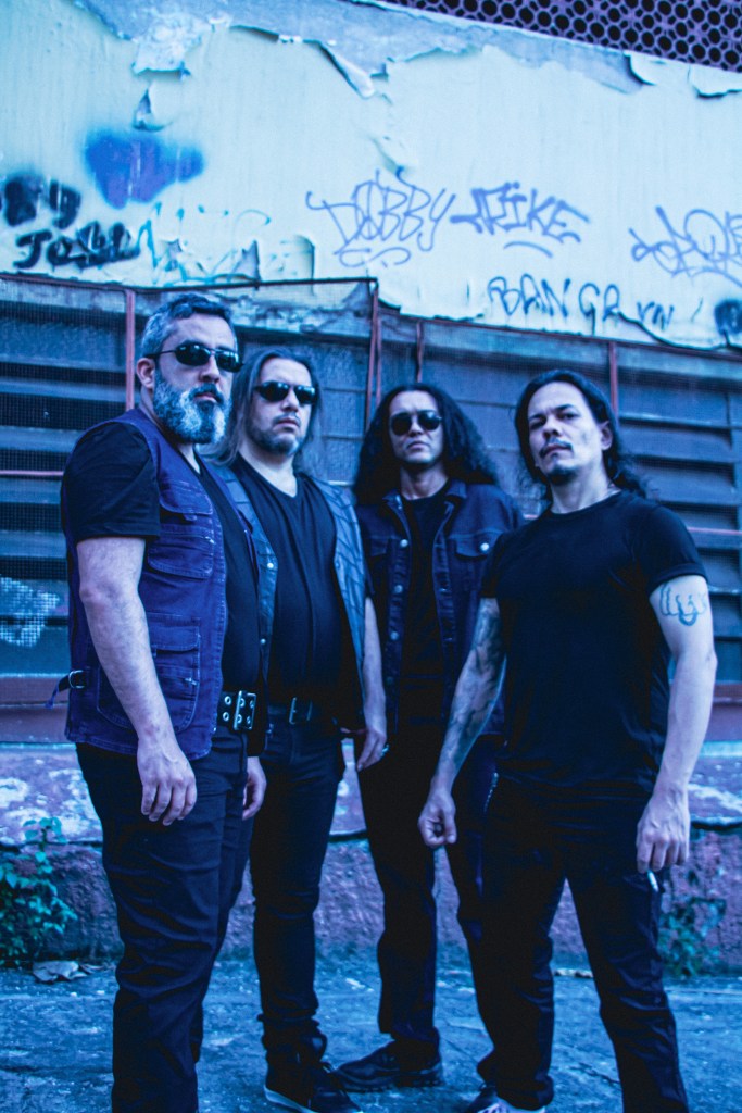 Currently consisting of members Antonio Vargas (guitar, vocals), Frederico Lima (bass, vocals), Daniel Escobar (guitar, vocals), and Felipe Saboia (drums), the band’s third album digs deep into the themes of what motivates human action, and the philosophical aspects of the human mind. Wasting no time comes the title track, “Savant Attack” that screeches onto the scene with eerie anticipation. As the guitars begin and the drums rise, we prepare ourselves for battle. Signature thrash tuneage kicks in and we’re sent flying into the double-kickers.