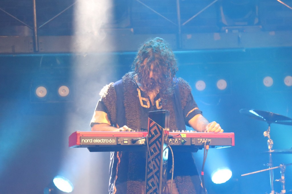 That excitement carried on in “Mine Mine Mine!” as pick axes rose to the air and fans swayed to the lyrics. With catchy lyrics and an infectious chorus, you found yourself singing along in an instant, absolutely ecstatic to be a part of such fun. The Power Metal vibe rang through when “Gates of Ekrund” began, and the headbanging commenced. Keyboardist Frederico had my attention as his unstoppable headbanging kept going from song to song, hypnotizing in a way as his energy seemed endless. Fans stood united, unwavering as “as long as we are together at the gates we’ll not fall,” and they would hold true to those words.