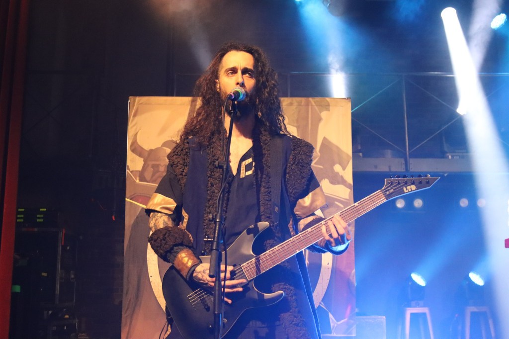 With the lights now up, Dwarven Commander Francesco Cavalieri’s arms rose to welcome his Dwarven brothers and sisters with unparalleled joy. “Fellows of the Hammer” saw the crowds shouts turn into song as they matched the band word for word. A fan favorite, Francesco found it easy to let his duties fall to his comrades as their voices flooded the venue without falter.