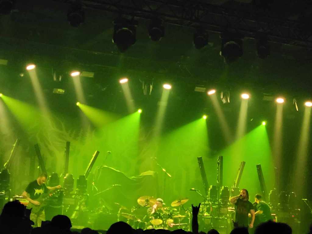 Sanguisugabogg has just started their set with the bludgeoning of “Face Ripped Off” that had me both awe-struck and curious. For a band whose sound I found to be diluted and muffled on recording, their entire set was clean and clear with both vocals and instrumentals balancing out. It was a quick set, but one still packed with fury as fans embraced the band’s every whim to thrash, dance, and smash their way around the floor. 7 songs ended with the popular “Dead as Shit” that had the crowd riled for one last fight, numbers accumulating quickly as bodies crashed into one another in a frenzy of joy with a touch of madness.